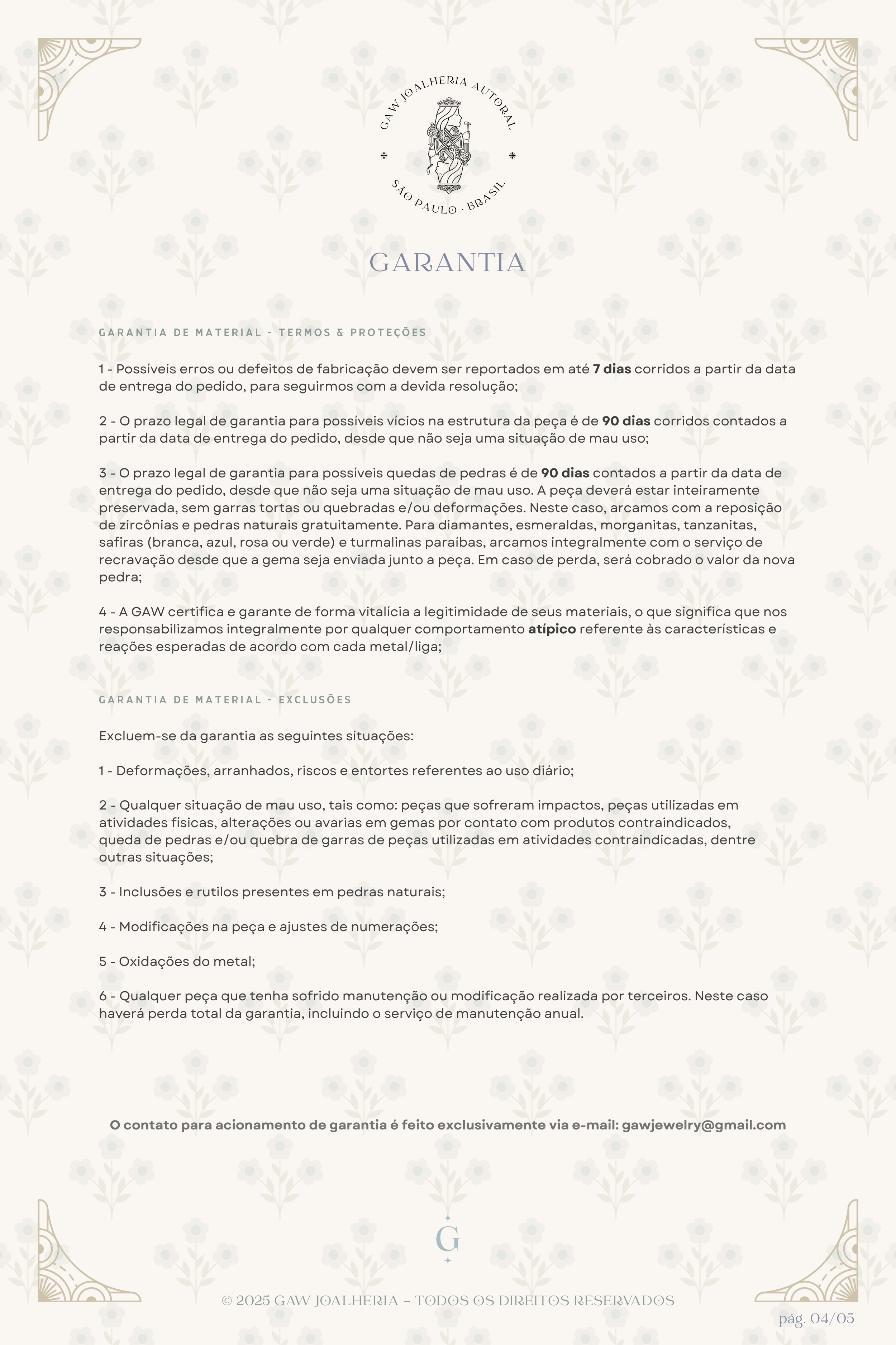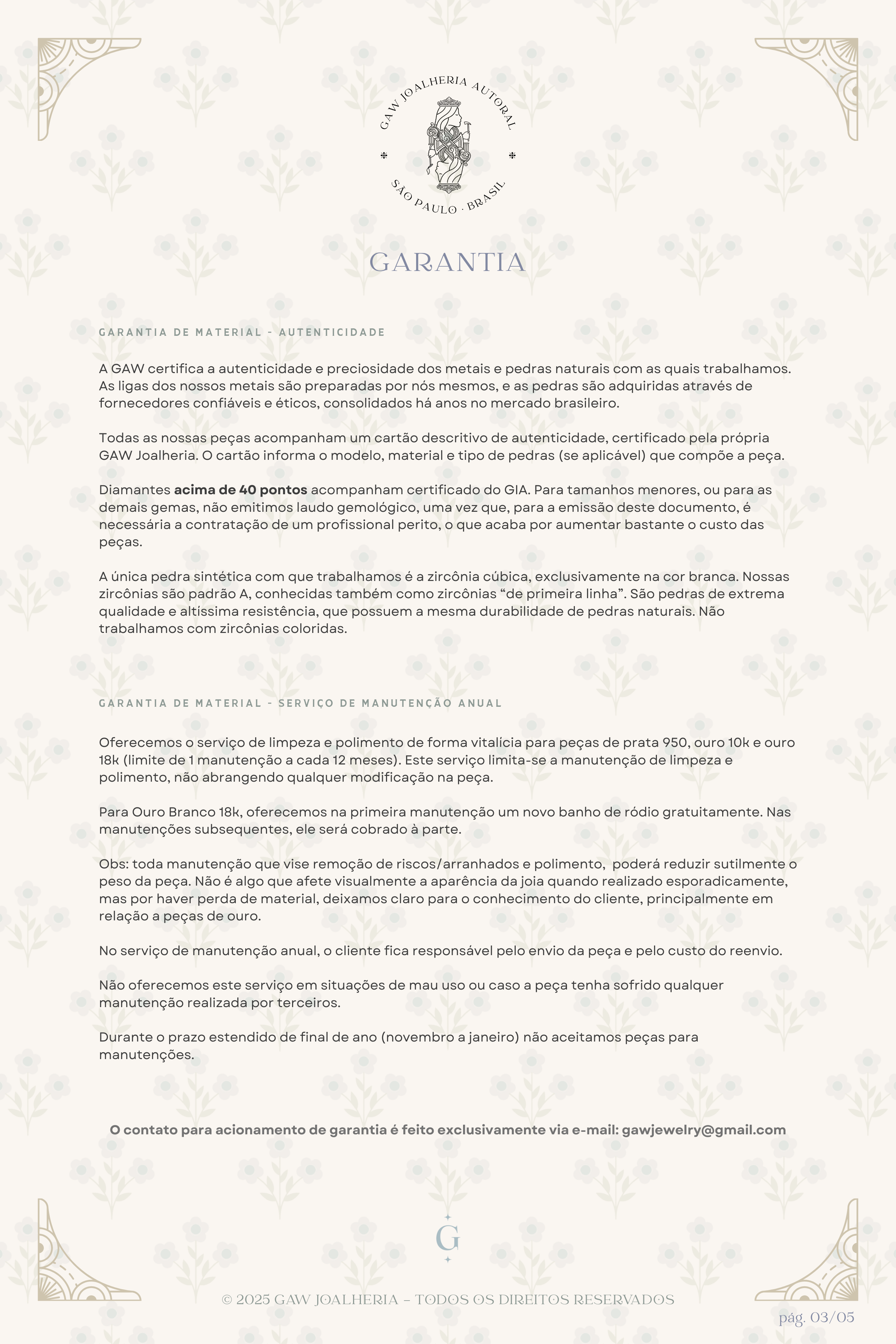✴︎ Os textos acima são autorais e foram redigidos pela própria GAW Joalheria ® com embasamento jurídico, mediante pesquisas e consultas. É vetada a reprodução e compartilhamento integral ou parcial deste conteúdo sem autorização expressa. ✴︎