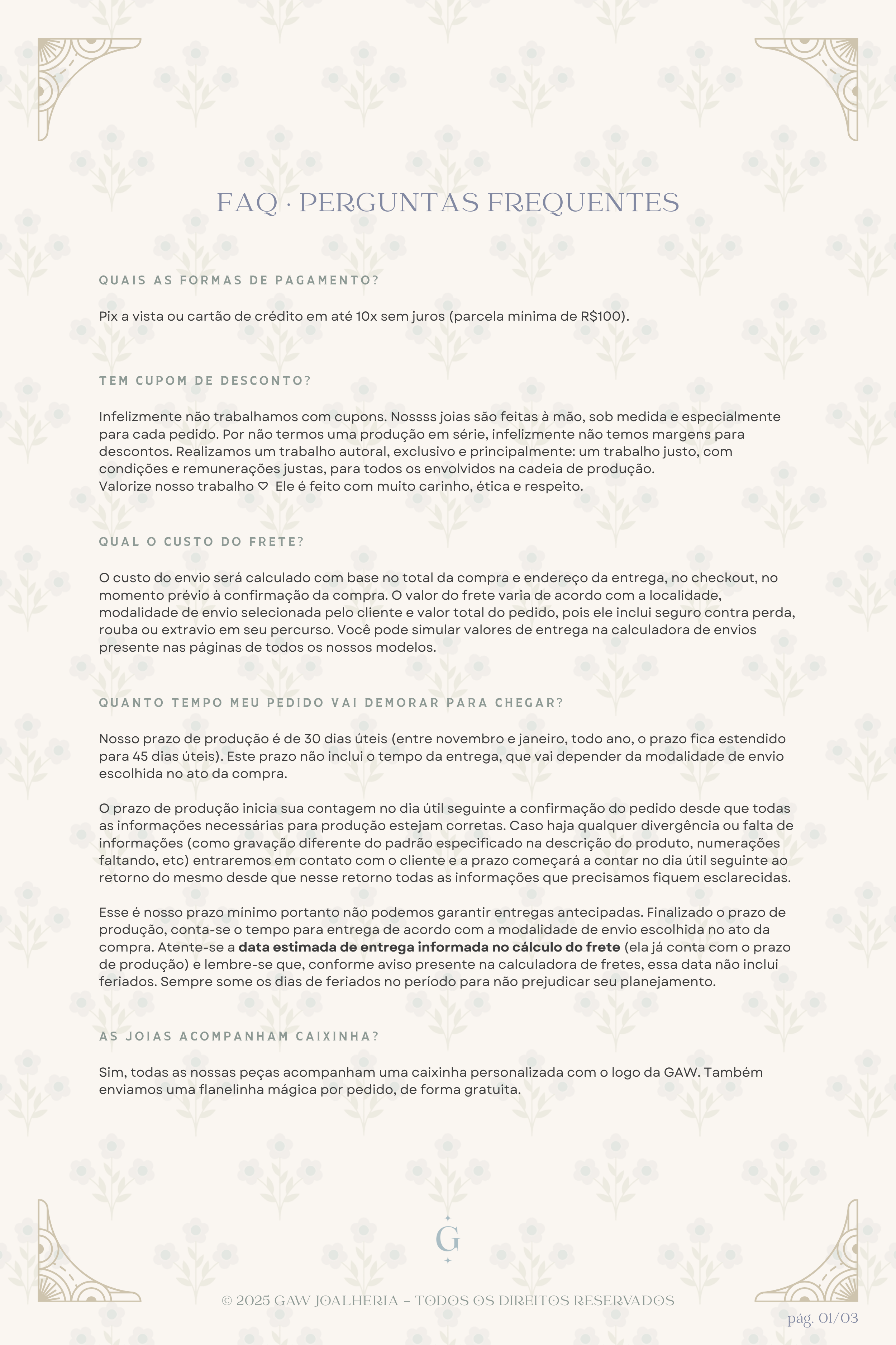 Atente-se ao prazo de produção & data estimada de entrega